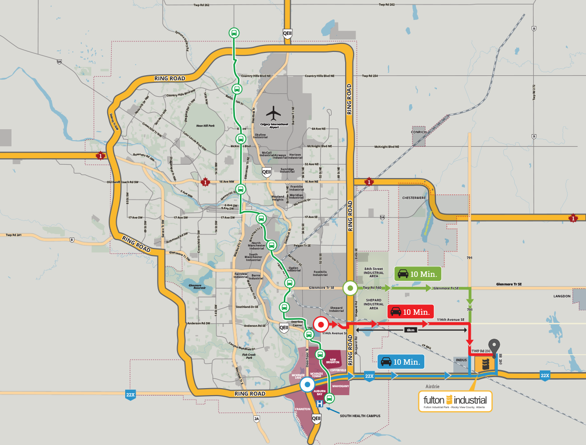 Positioned on the primary east/west commerical shipping corridor through Calgary, Fulton's location offers a number of strategic and operational benefits: