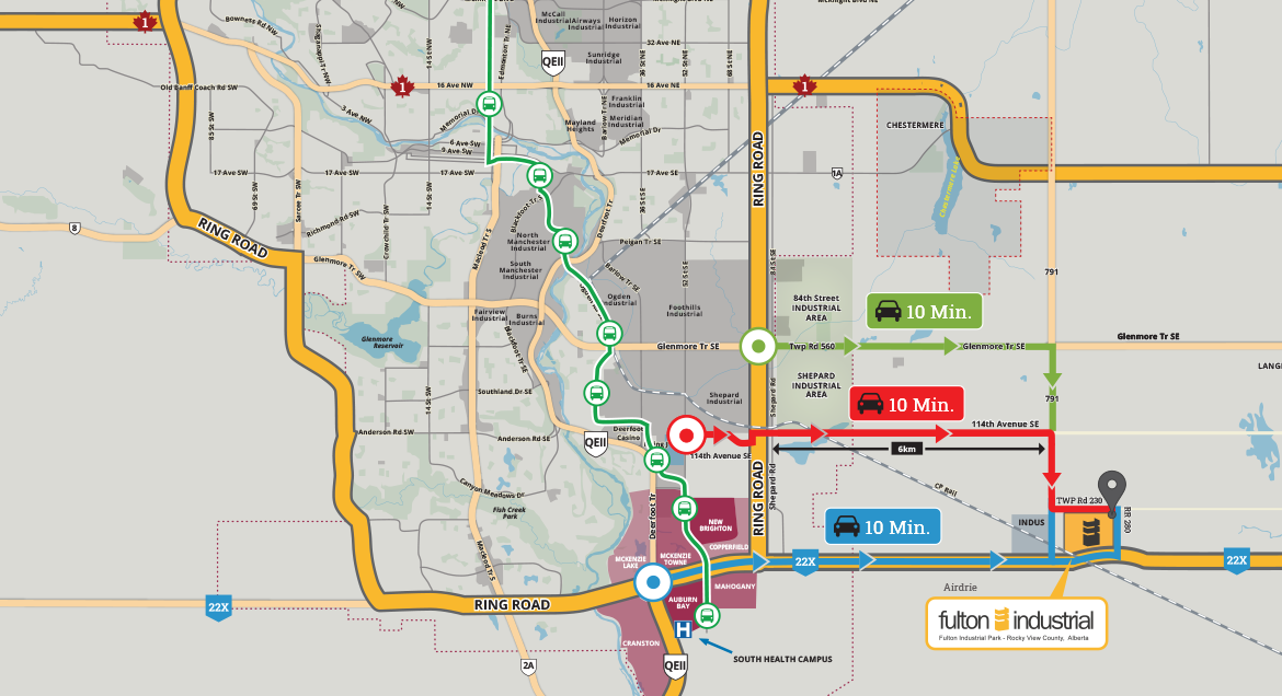While Fulton offers businesses close proximity to Calgary's transportation routes, workforce and services, it also offers substantial savings as a result of its Rocky View Country location.